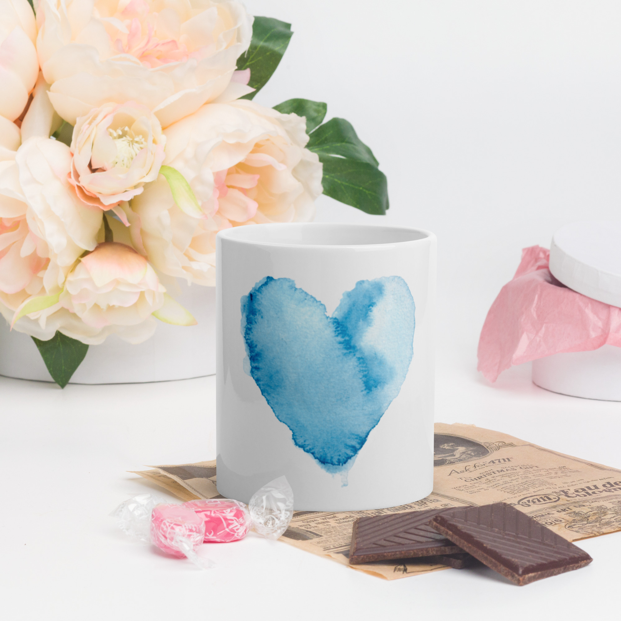 Blue Heart White glossy mug